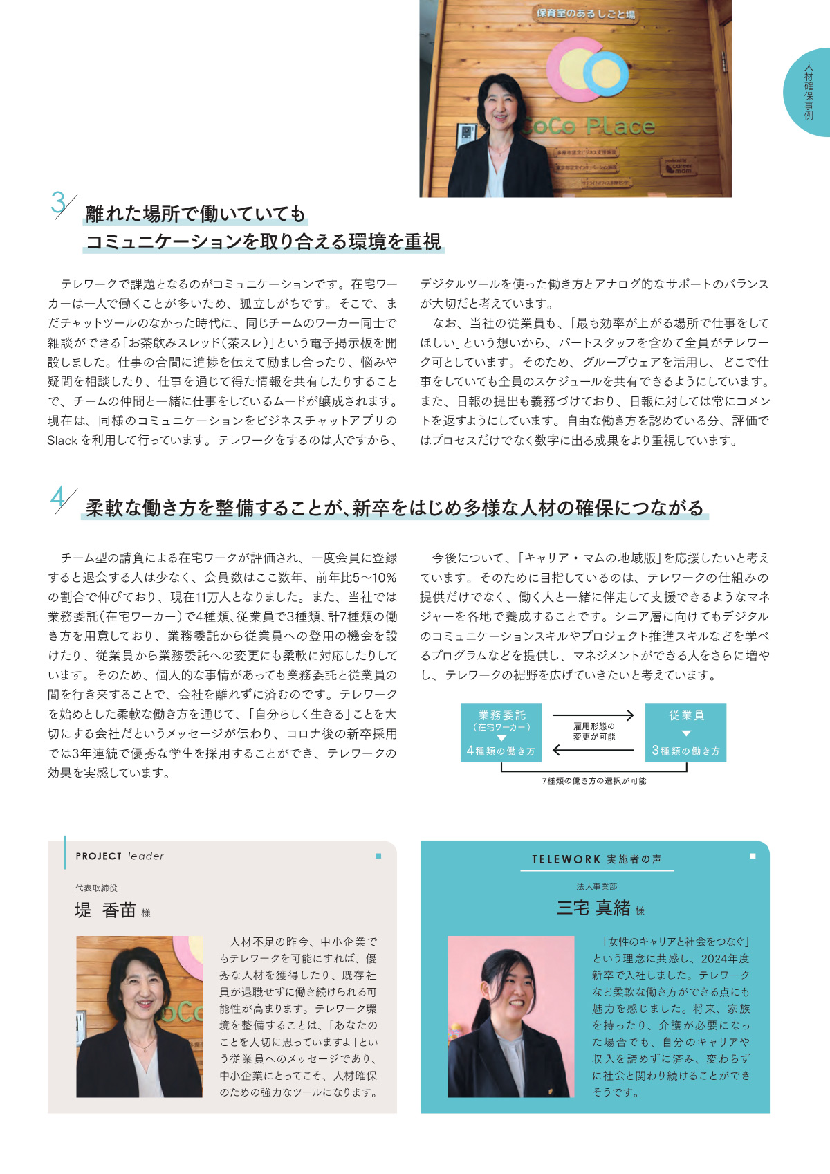 文字サイズ 小 中 大 勤怠管理者用ログイン TOP 支援策一覧 セミナー・イベント情報 ニュース 多様な働き方活用事例集 お役立ち情報 サテライトオフィス利用 サテライトオフィス特徴紹介 サテライトオフィス検索 お問い合わせ よくある質問 勤怠管理者用ログイン TOP 多様な働き方活用事例集一覧 人材確保 事例集 多様な働き方活用事例集 人材確保 事例集 新たな人材の採用や、既存従業員の離職防止など、テレワークによる人材確保の効果を得られた企業の事例をご紹介。 株式会社キャリア・マム 第一合成株式会社 株式会社HQ 株式会社フロンティアコンサルティング ⤢ 01/10 ✕ 01/10 PDFをダウンロード (1.38MB) 多様な働き方活用事例集一覧に戻る
