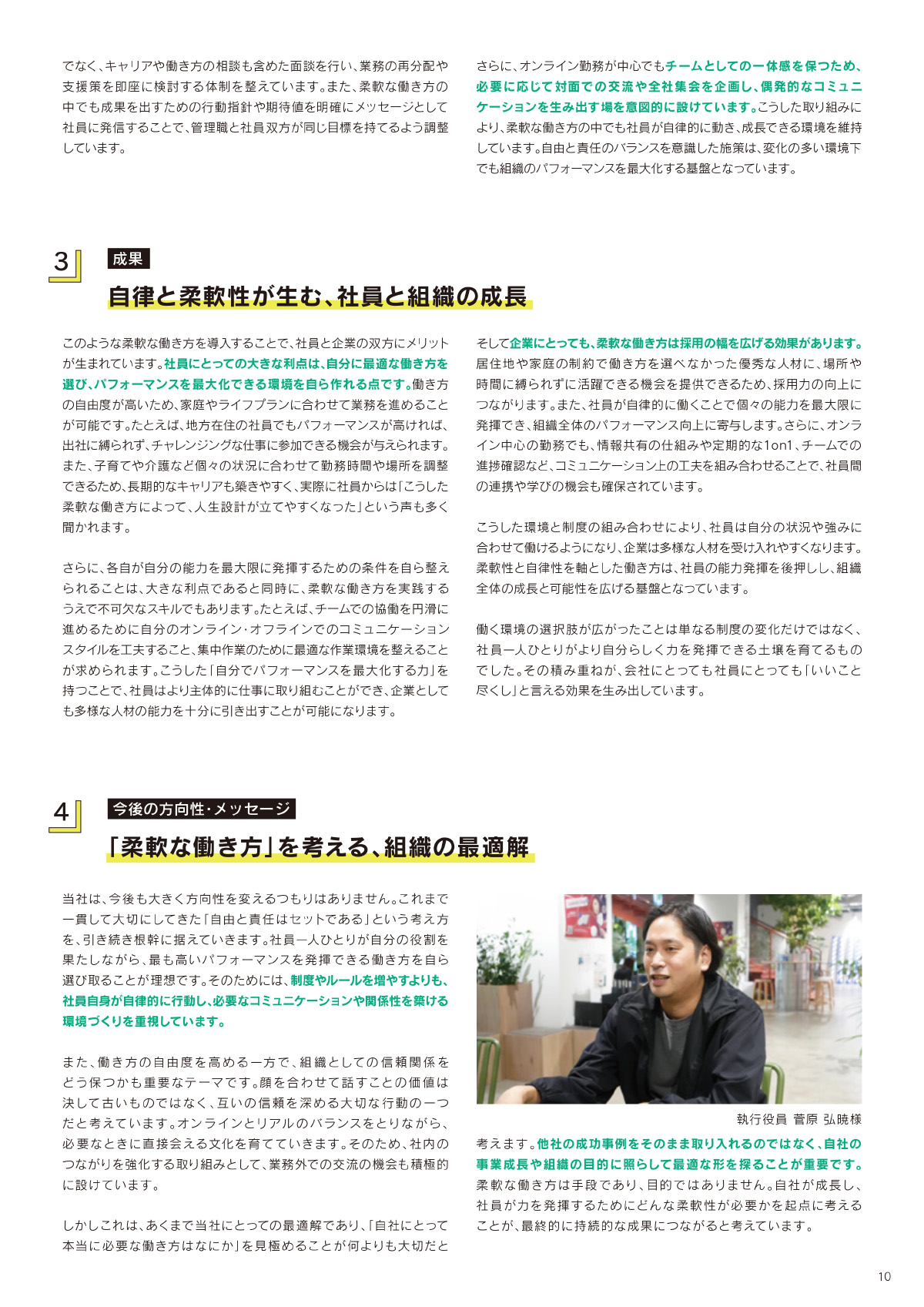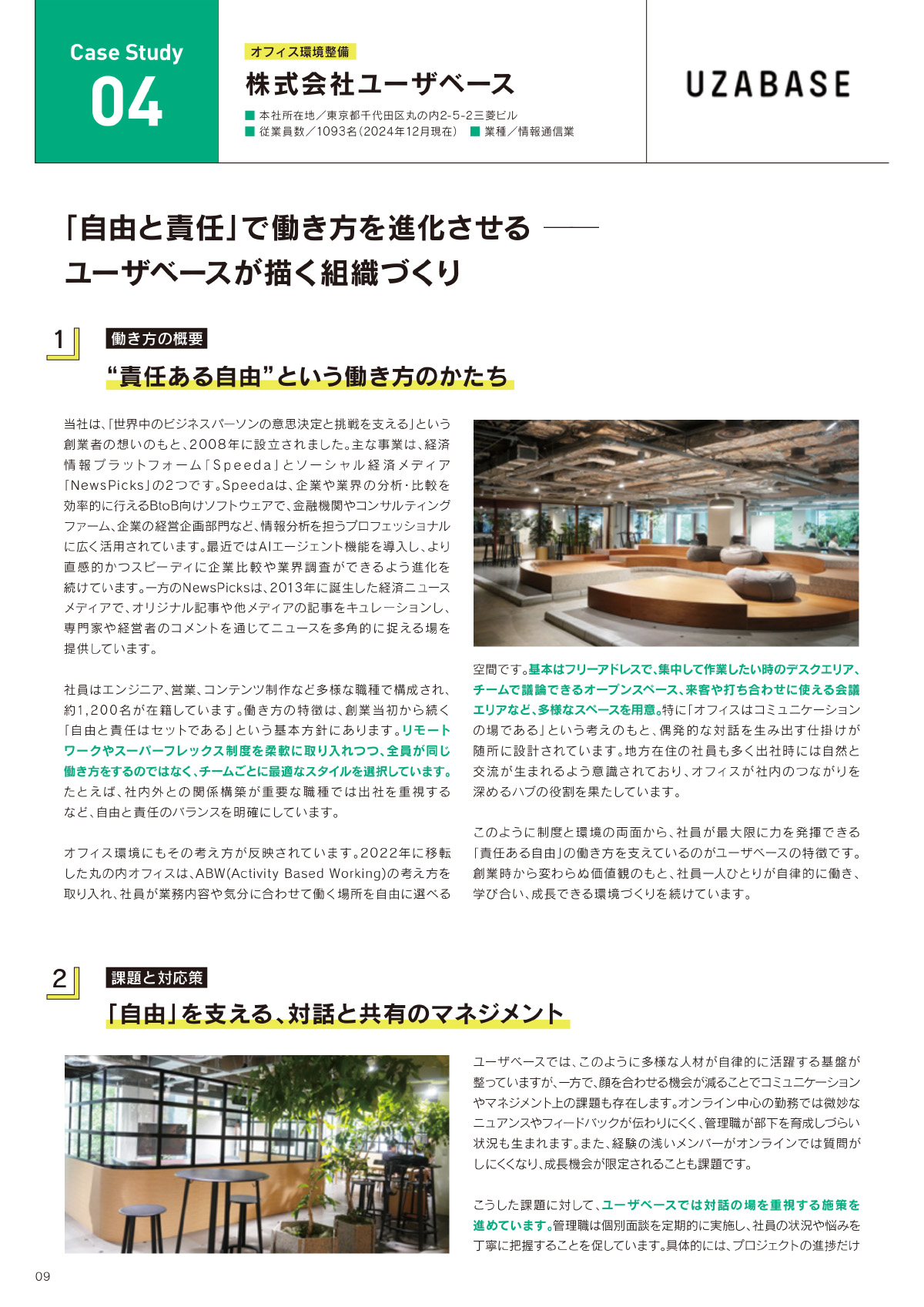 文字サイズ 小 中 大 勤怠管理者用ログイン TOP 支援策一覧 セミナー・イベント情報 ニュース 多様な働き方活用事例集 お役立ち情報 サテライトオフィス利用 サテライトオフィス特徴紹介 サテライトオフィス検索 お問い合わせ よくある質問 勤怠管理者用ログイン TOP 多様な働き方活用事例集一覧 株式会社ユーザベース 多様な働き方活用事例集 株式会社ユーザベース 自律を促す対話と柔軟な働き方を組み合わせた、自由と責任の組織設計。社員一人ひとりの成長と組織の可能性を最大限に広げる環境づくり。 ⤢ ✕ PDFをダウンロード(465KB) 多様な働き方活用事例集一覧に戻る