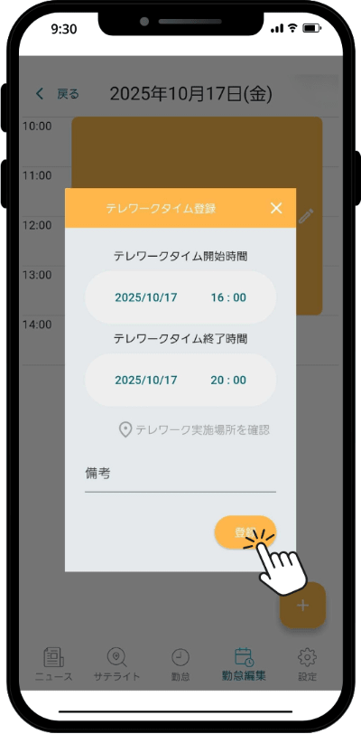 ❸登録画面が表れ、勤務時間と勤務詳細を登録することができます。