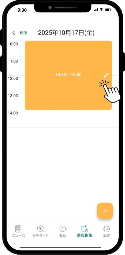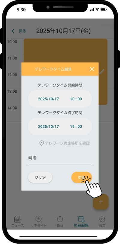 ❸編集画面が表れ、勤務時間と勤務詳細を編集することができます。